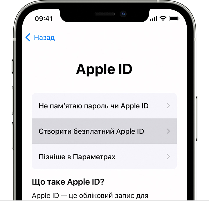 Ви можете створити ідентифікатор Apple ID під час налаштування пристрою або налаштувати його пізніше в магазині App Store.