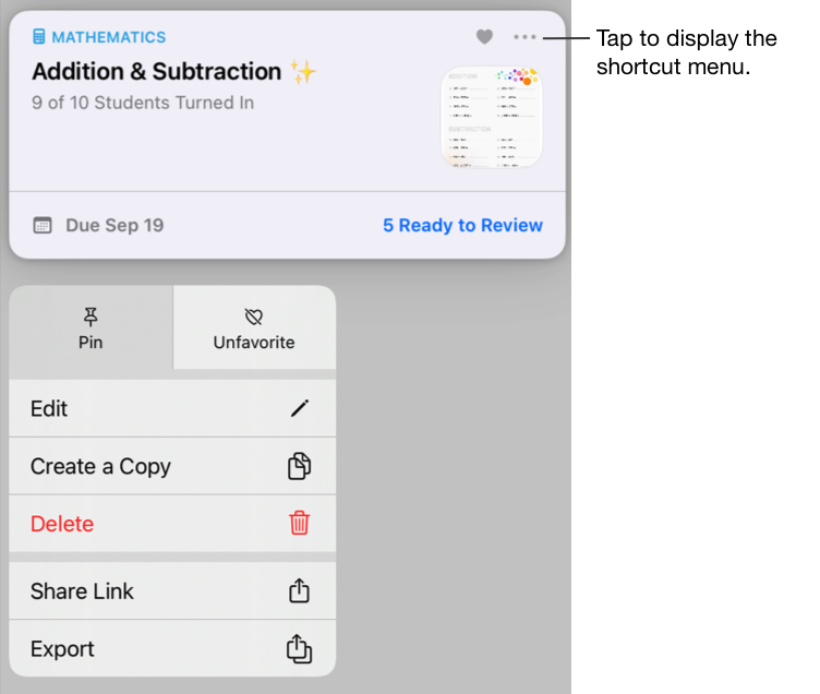Торкніться та утримуйте завдання або контрольну роботу, які потрібно закріпити, і виберіть «Прикріпити».