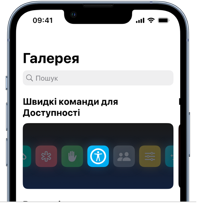 Галерея пропонує вишукану колекцію креативних і корисних швидких команд. Завітайте до Галереї, щоб дізнатися можливості швидких команд і побачити, як вони будуються. Знайшовши в Галереї швидку програму на свій смак, додайте її до своєї колекції швидких команд лише одним дотиком і пристосовуйте до своїх потреб.