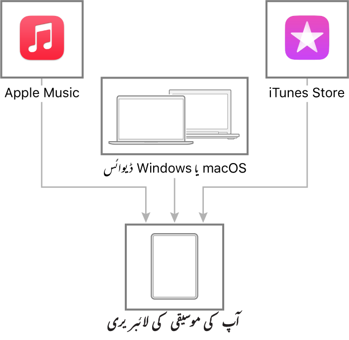 جیسے ہی آپ Apple Music کو سبسکرائب کرتے ہیں تو آپ اسی وقت Apple Music کیٹلاگ سے لاکھوں گانے سننا شروع کر سکتے ہیں۔ اپنے تمام ڈیوائسوں پر اپنی موسیقی لائبریری تک رسائی حاصل کرنے کے لیے ”لائبریری سِنک کریں“ کو چالو کریں (سیٹنگ