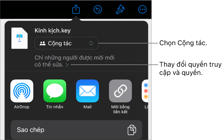 Nếu Cộng tác không hiển thị trong menu bật lên ở trên cùng, hãy chạm vào menu bật lên, sau đó chạm vào Cộng tác.