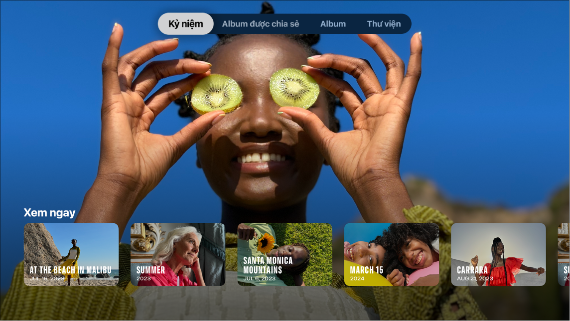 trên Apple TV 4K để xem các ảnh và video iCloud của bạn, xem các kỷ niệm ảnh, tạo bản trình chiếu, v.v.