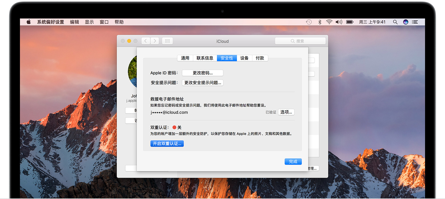 如果 iCloud 用户至少拥有一个装有 iOS 9 或者 OS X El Capitan 或更高版本的设备,现在就可以使用双重认证。了解详情。