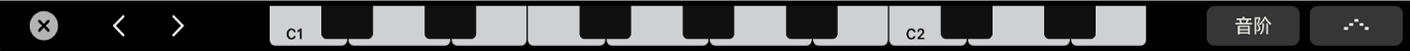 若要调整触控栏键盘的八度音程范围,请轻点触控栏键盘左侧的其中一个“键盘八度音程”按钮。