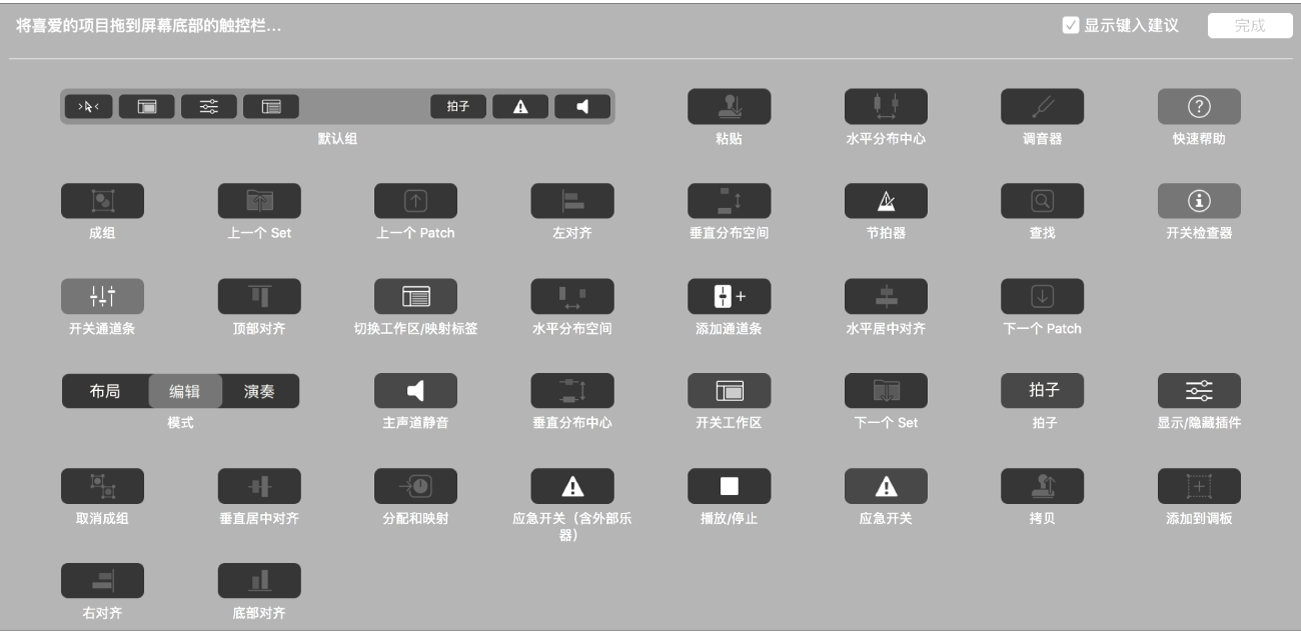 自定完触控栏后,点按“自定触控栏”窗口中的“完成”。