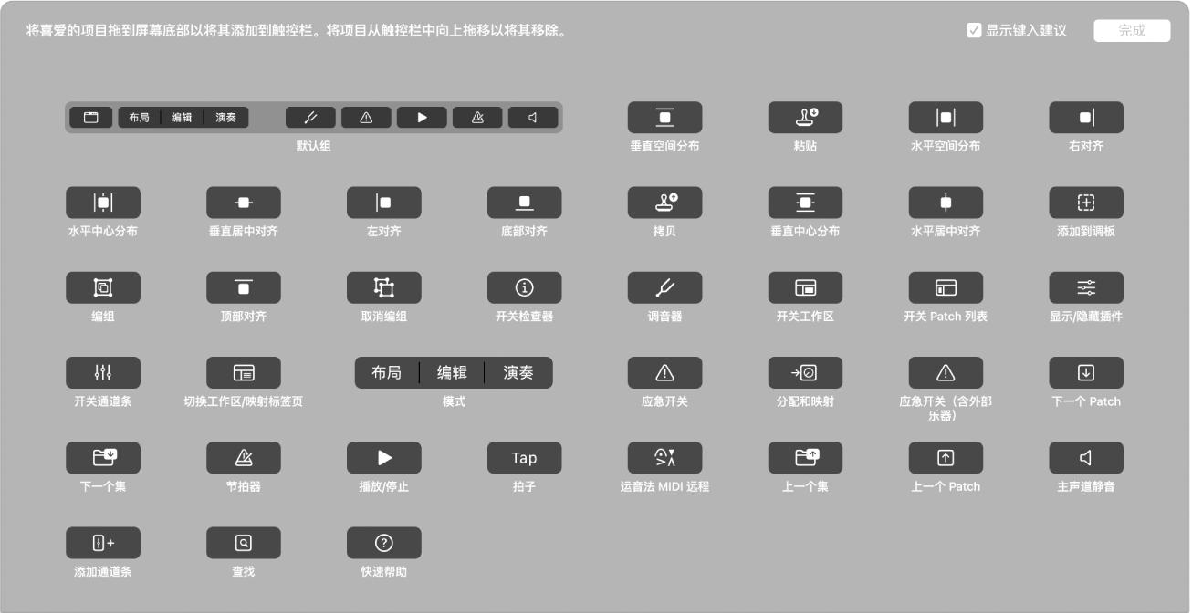 在 MainStage 中,选择“显示”>“自定义触控栏”。