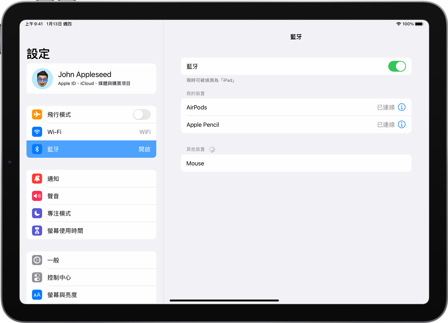 如何連接藍牙滑鼠或觸控式軌跡板到 iPad