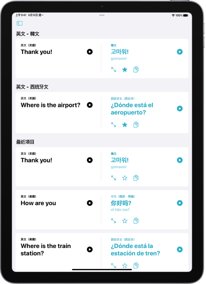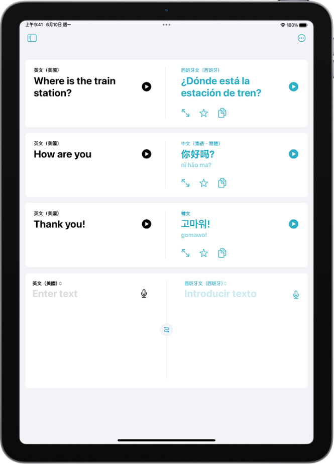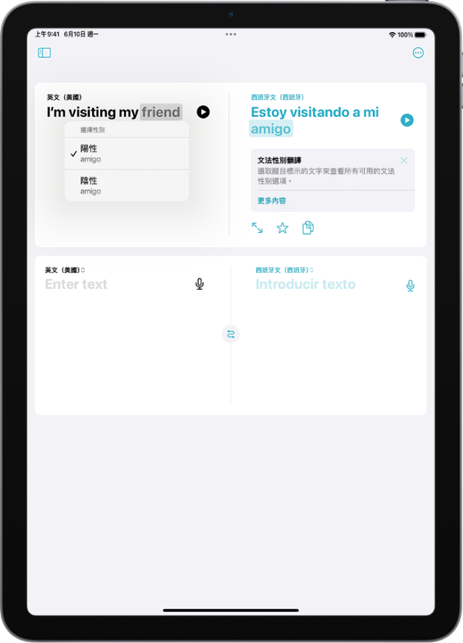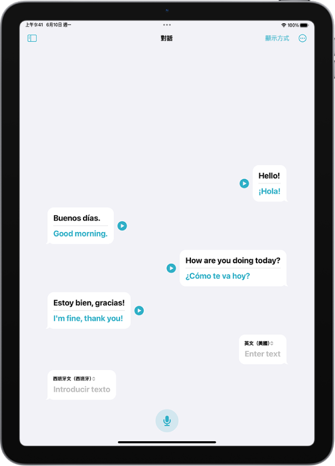 使用 iPad 翻譯文字和語音,跨語言進行對話