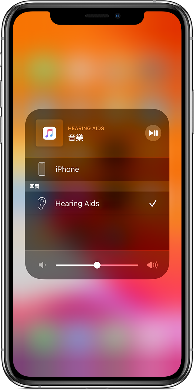 - 請確定你的助聽器在「控制中心」播放控制的裝置選擇區域中出現。