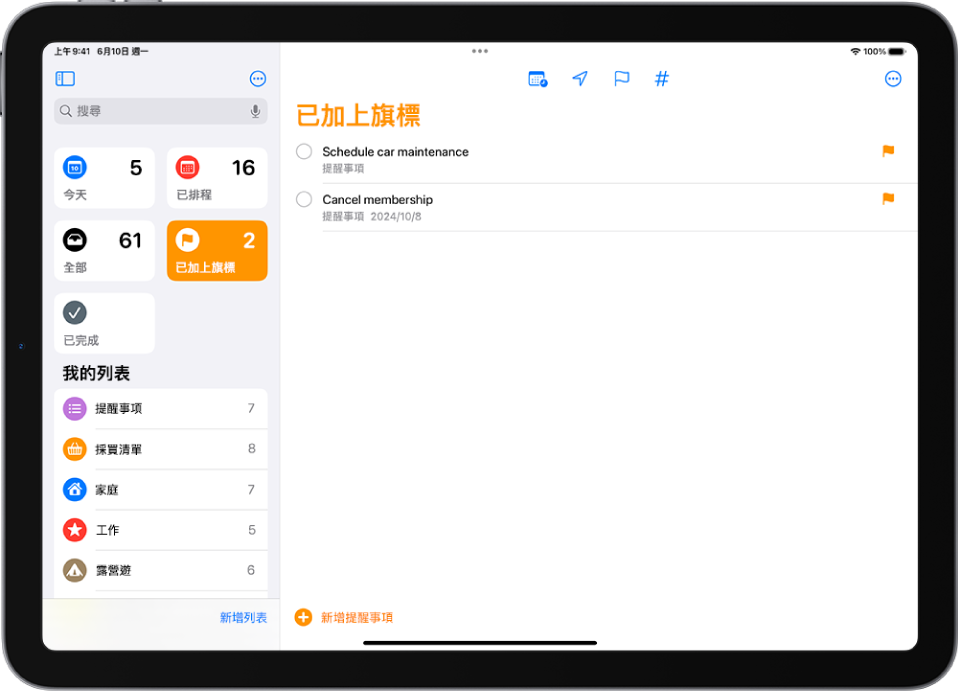 前往 iPad 上的「提醒事項」App