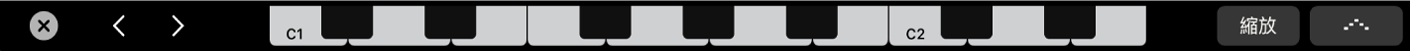 若要調整觸控列鍵盤的八度音階範圍,請點一下觸控列鍵盤左側的其中一個「鍵盤八度音階」按鈕。