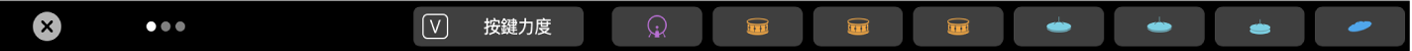 點一下「鼓組板」按鈕時,你可以使用觸控列以鼓組 Patch 在「鼓手」或軟體樂器音軌上彈奏樂鼓。
