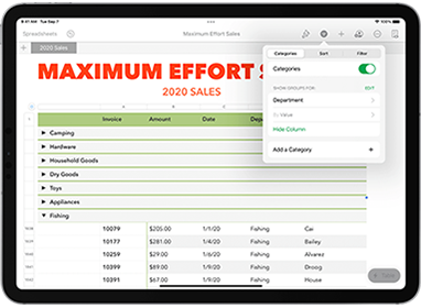 Share Numbers spreadsheets by converting them to compatible formats such as Microsoft Excel, CSV and PDF.